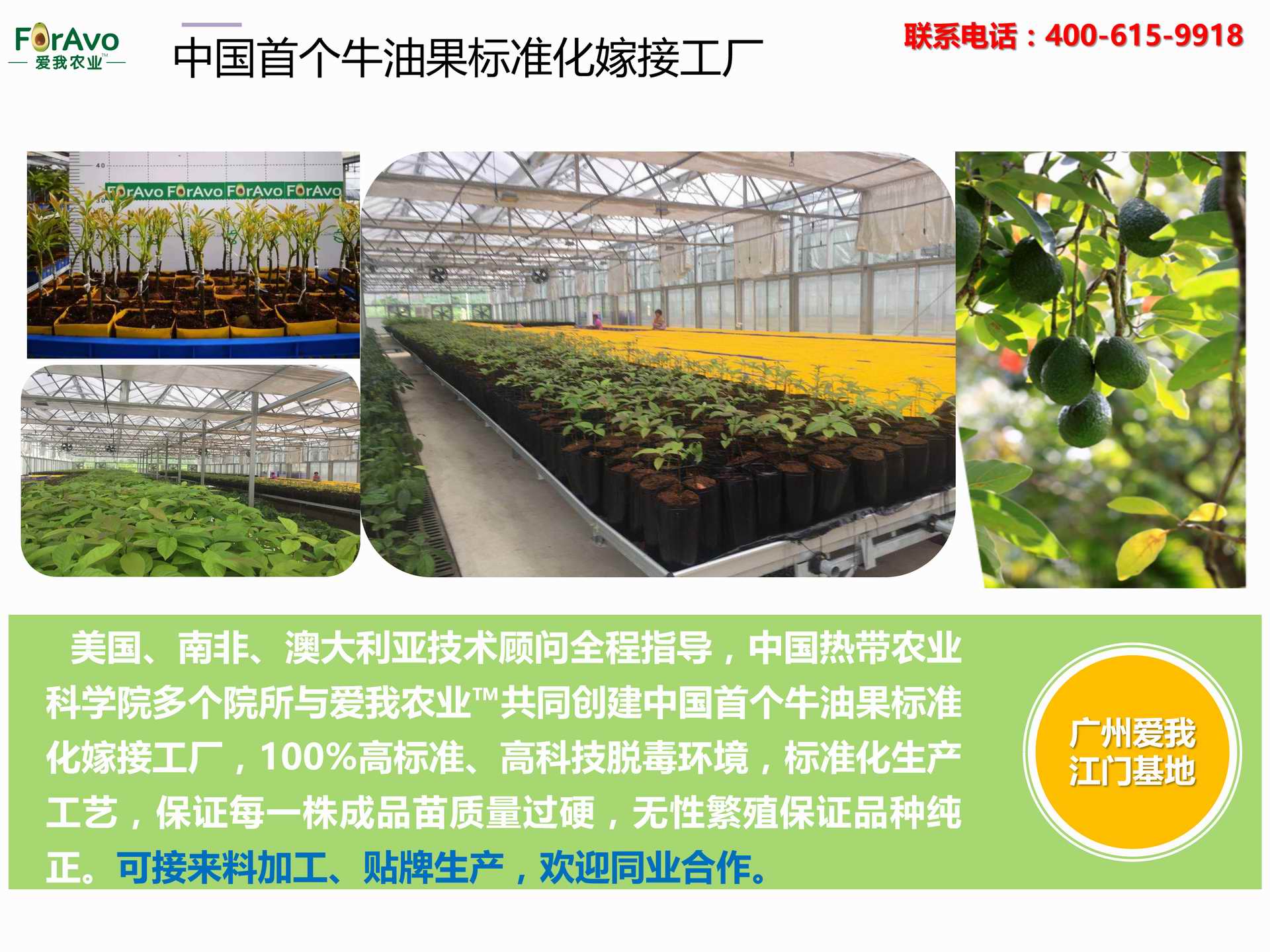 海南愛(ài)我農(nóng)業(yè)科技有限公司是一家綜合性的高科技農(nóng)業(yè)發(fā)展企業(yè),旗下愛(ài)我農(nóng)業(yè)TM致力于打造中國(guó)最大最強(qiáng)的牛油果種植企業(yè)。依托美國(guó)、南非、澳大利亞等擁有百年牛油果繁育、種植歷史以及產(chǎn)業(yè)鏈?zhǔn)袌?chǎng)的優(yōu)勢(shì),開(kāi)展牛油果種苗繁育、種植技術(shù),種植加盟、深加工等產(chǎn)業(yè)。結(jié)合中國(guó)市場(chǎng),面向廣大苗圃基地、種植農(nóng)場(chǎng)、合作加工等企業(yè),推出的適合規(guī)模化、標(biāo)準(zhǔn)化的牛油果全產(chǎn)業(yè)鏈服務(wù)。 Hainan Foravo Agricultural Technology Co., Ltd. is a comprehensive high-tech agricultural development enterprise , dedicated to building the largest and most powerful avocado plantation enterprise in China. Relying on the advantage of avocado nursery, planting history, and the industrial chain over 100 years in the United States, South Africa, Australia, we are carrying out nursery, planting, proce...